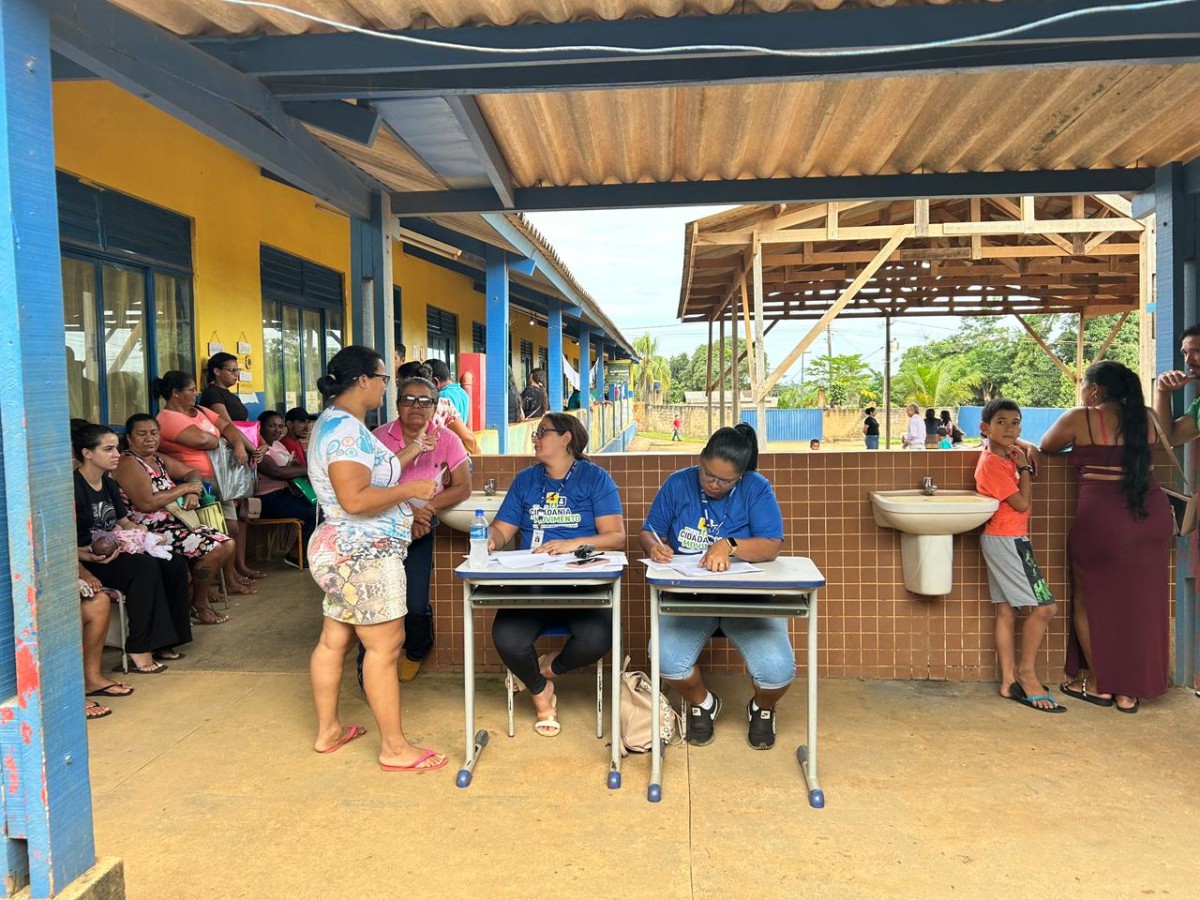 O projeto Cidadania em Movimento, da Prefeitura de Porto Velho, realizado pela Secretaria Municipal de Assistência Social de Inclusão e da Família (Semias) e parcerias, esteve na última sexta-feira (6), no assentamento Tiago Campin dos Santos, na zona rural de Nova Mutum, e no sábado (7) no distrito de União Bandeirantes, na escola 3 de Dezembro. O projeto realizou 819 atendimentos no assentamento Tiago Campin dos Santos e 442 no distrito de União Bandeirantes.